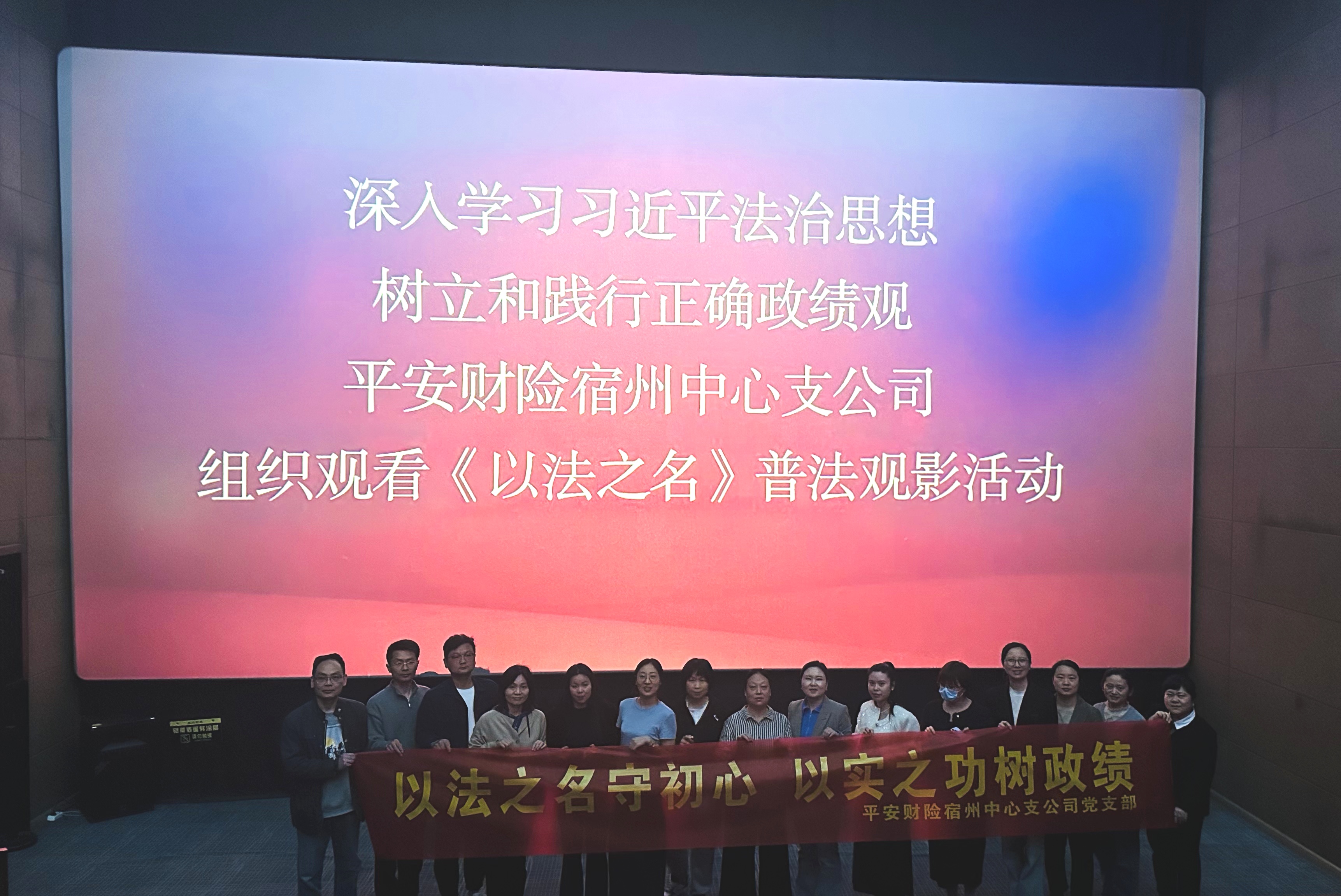 近日,平安财险宿州中心支公司党支部组织全体党员开展“以法之名守初心,以实之功树政绩”主题观影活动,集中观看法治教育影片《以法之名》,以沉浸式观影筑牢思想根基,以法治精神引领合规经营,以实干担当践行正确政绩观。