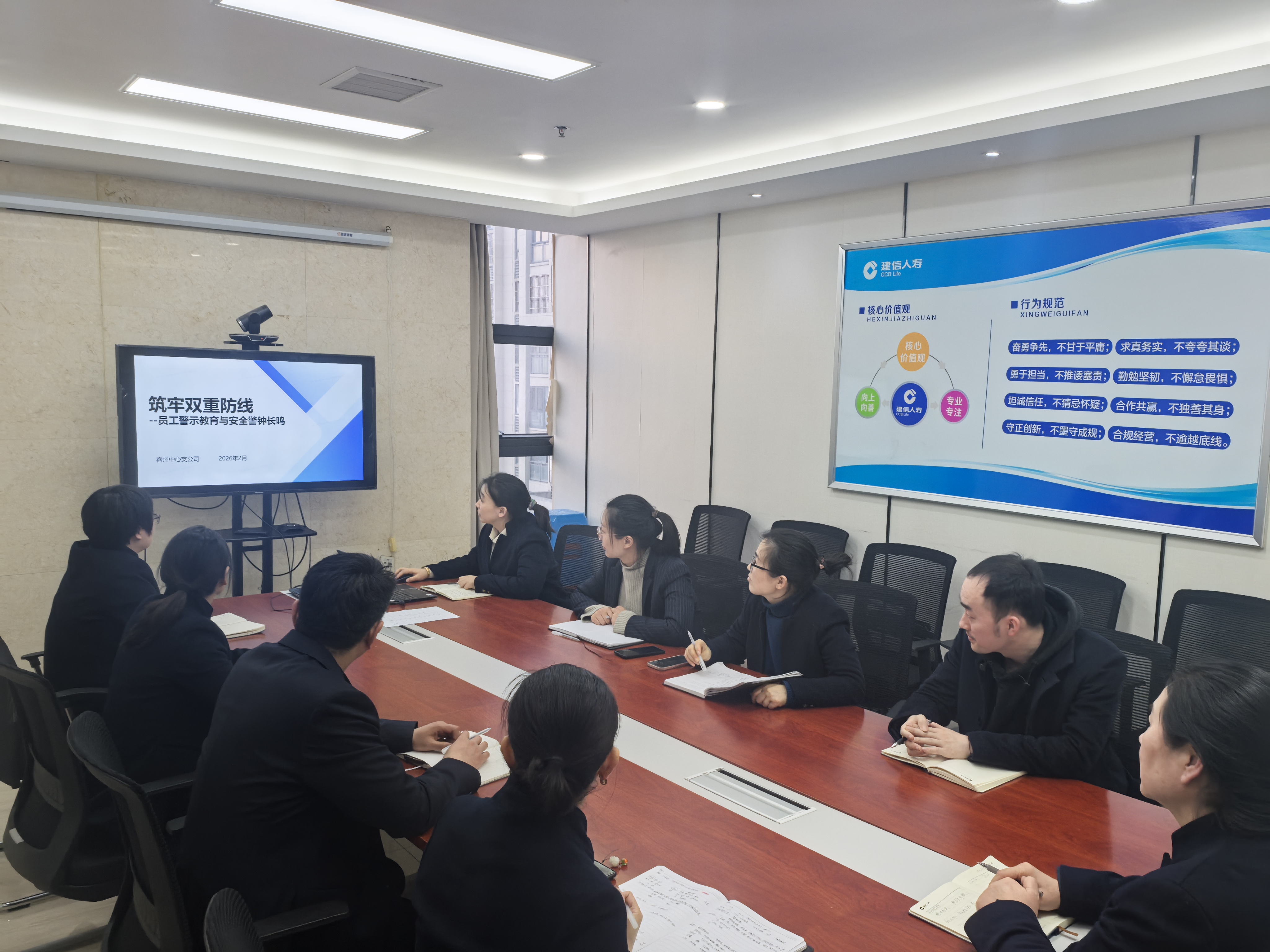 2026年2月13日下午,建信人寿宿州中支召开专题会议,传达贯彻上级关于安全生产与廉洁过节的工作要求。